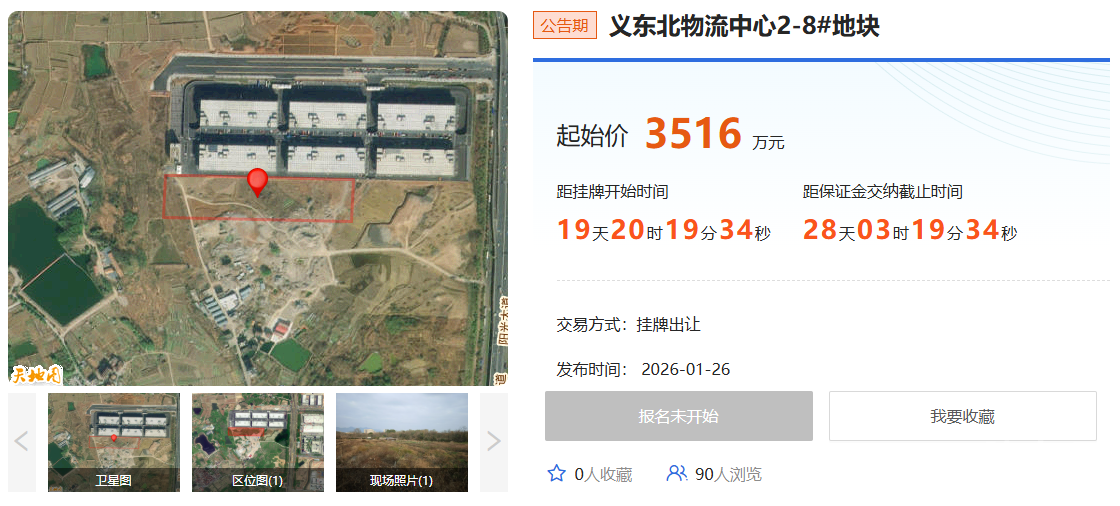 1月26日,义东北物流中心2-8#地块挂牌出让公告发布。