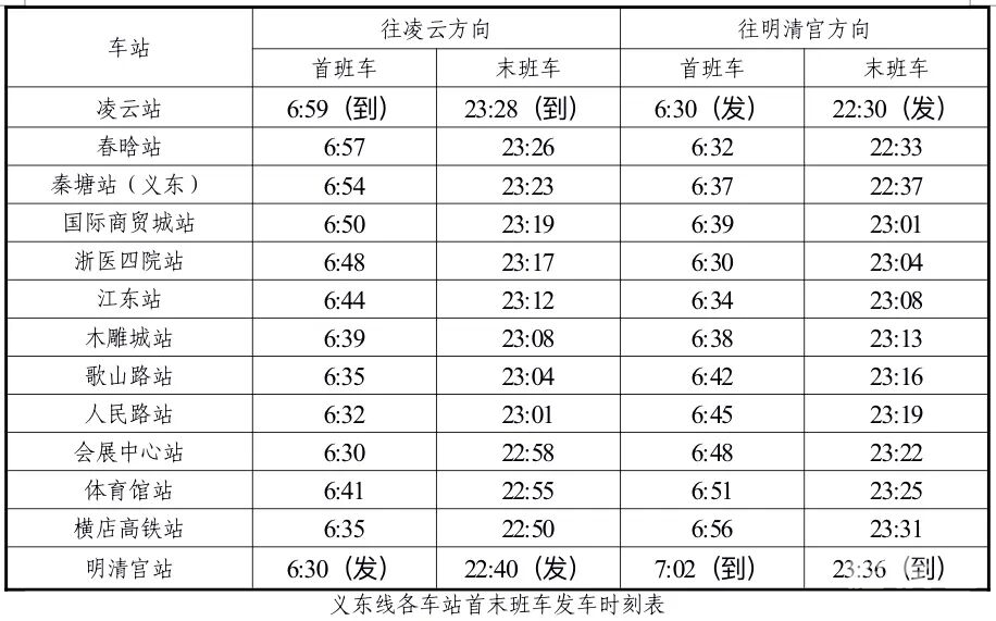 二、各次首末班车始发站及始发时间保持不变,个别车站运营载客列车到发时间稍有调整。首末班车沿途停靠信息如下: